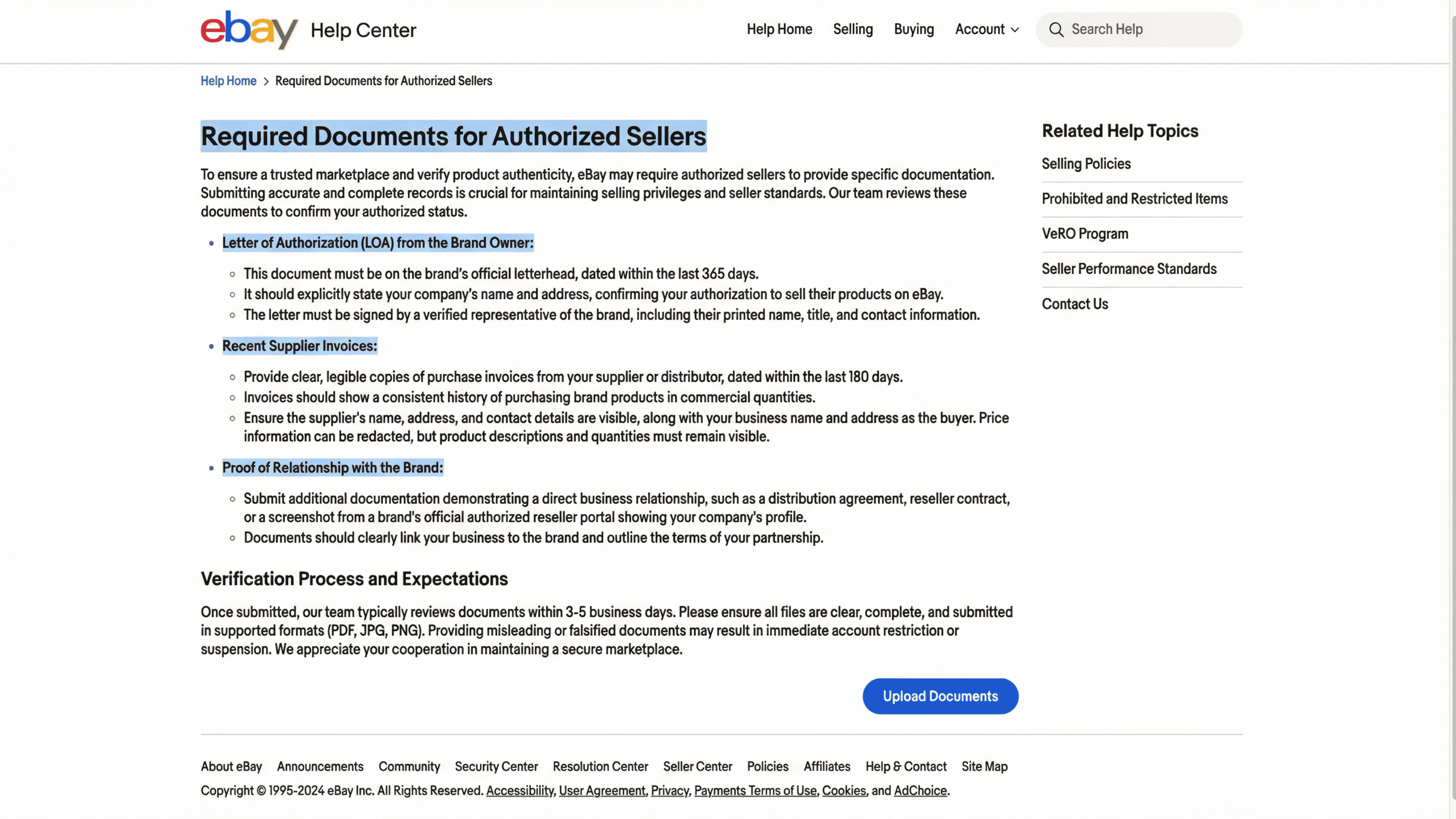 Depending on your relationship with the brand, eBay may request: