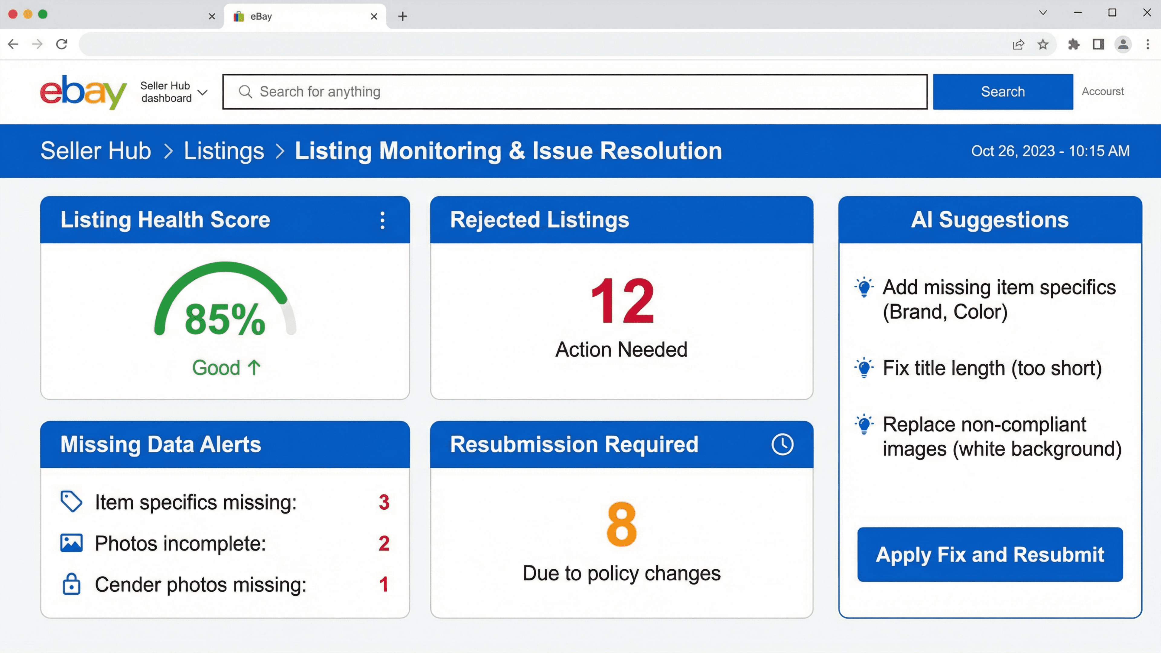 Improves listing quality, compliance & ranking on eBay