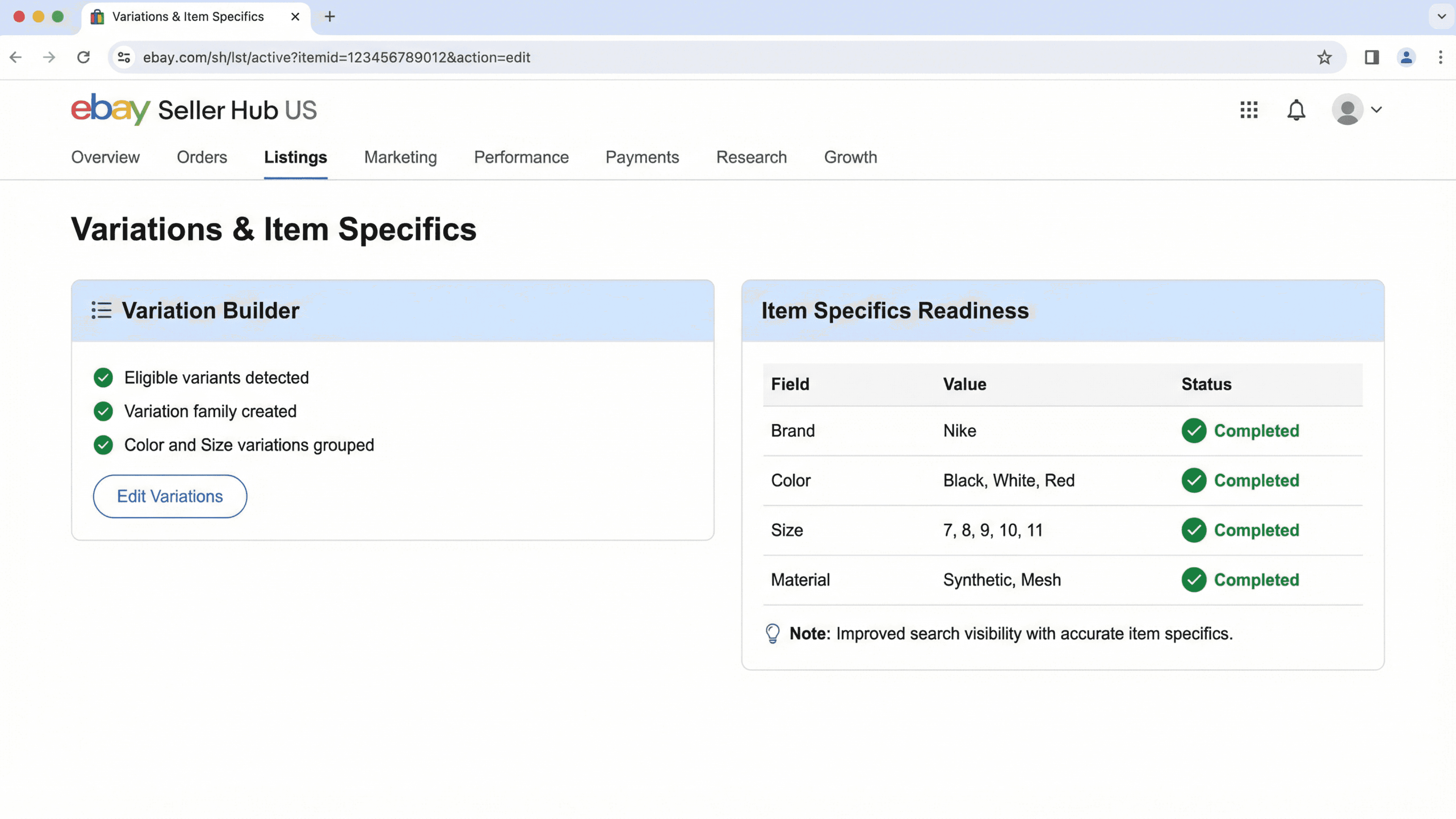 Ensures accurate item specifics to boost search visibility