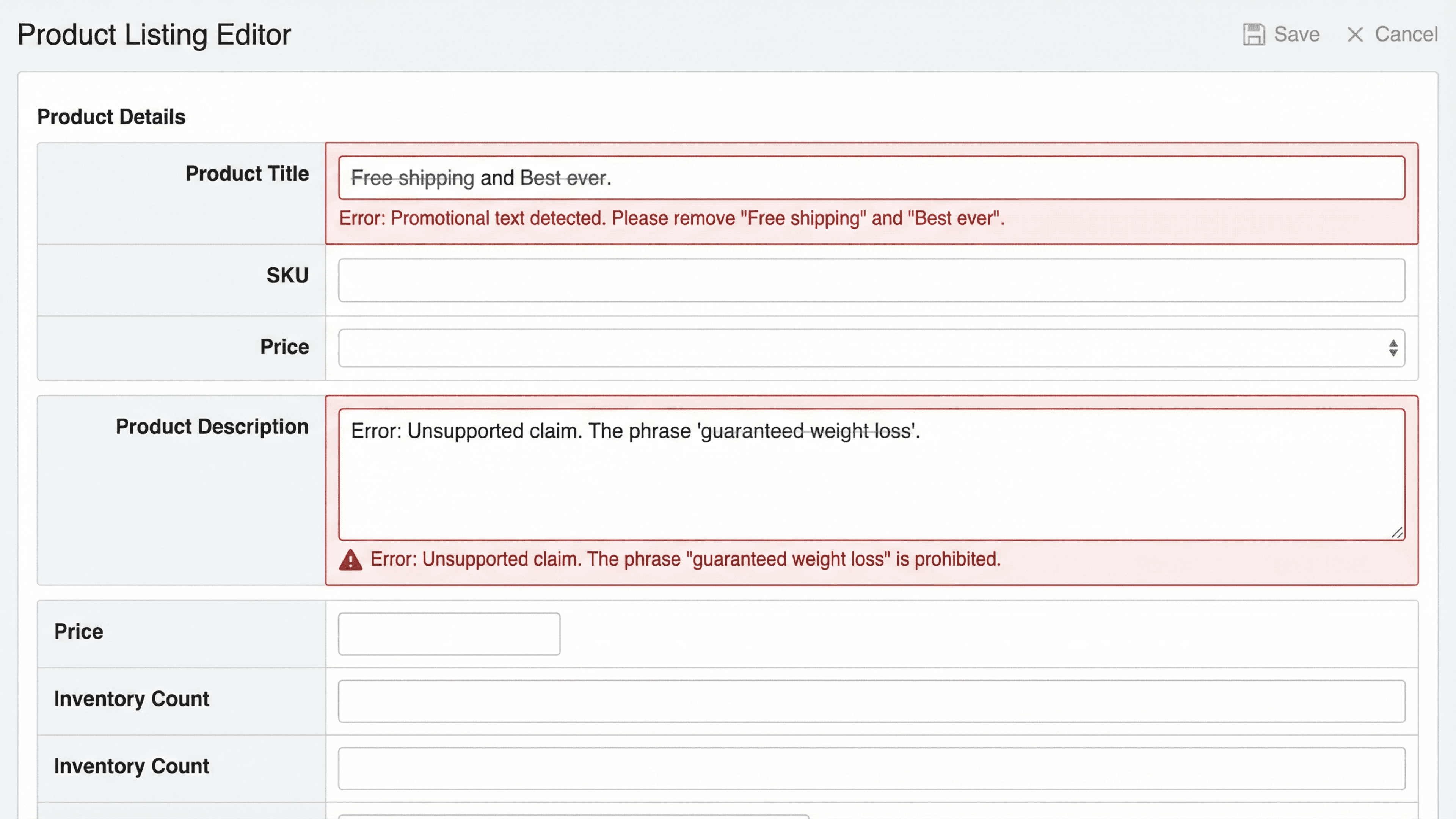 Identify, troubleshoot, and resolve Amazon listing errors quickly and confidently.