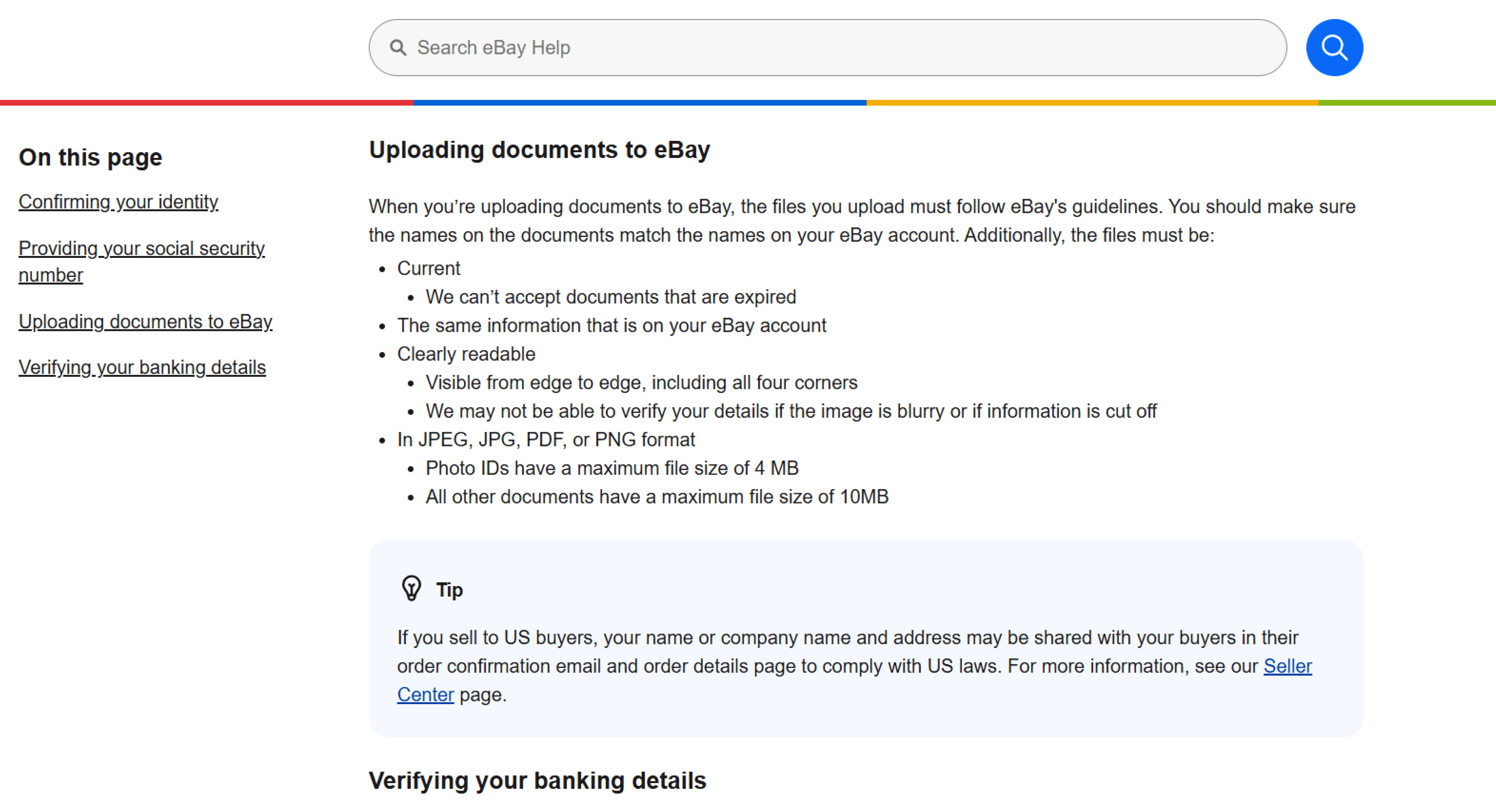 Depending on seller type, eBay may request: