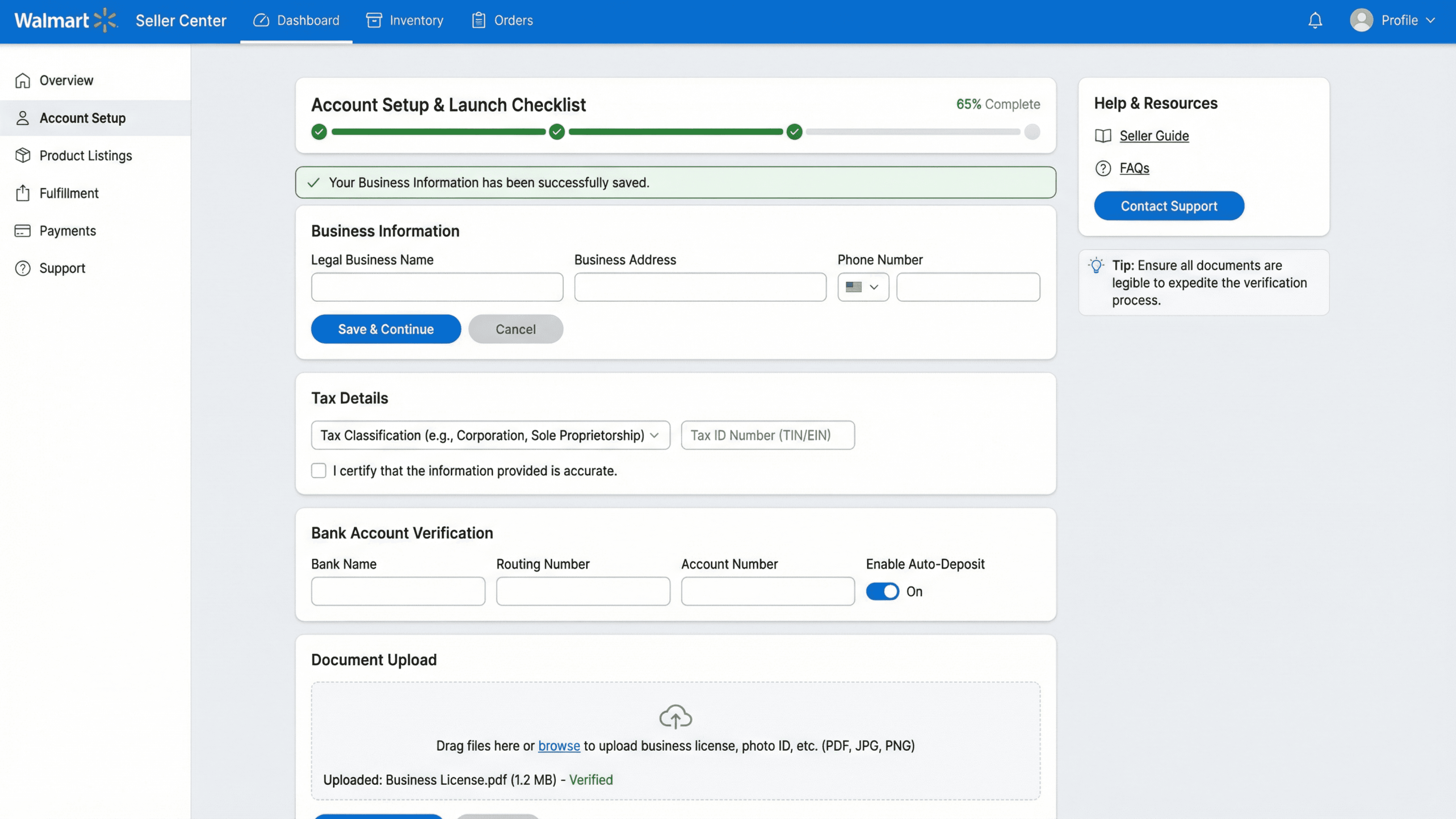 Follow these essential steps to complete your Walmart Marketplace registration: