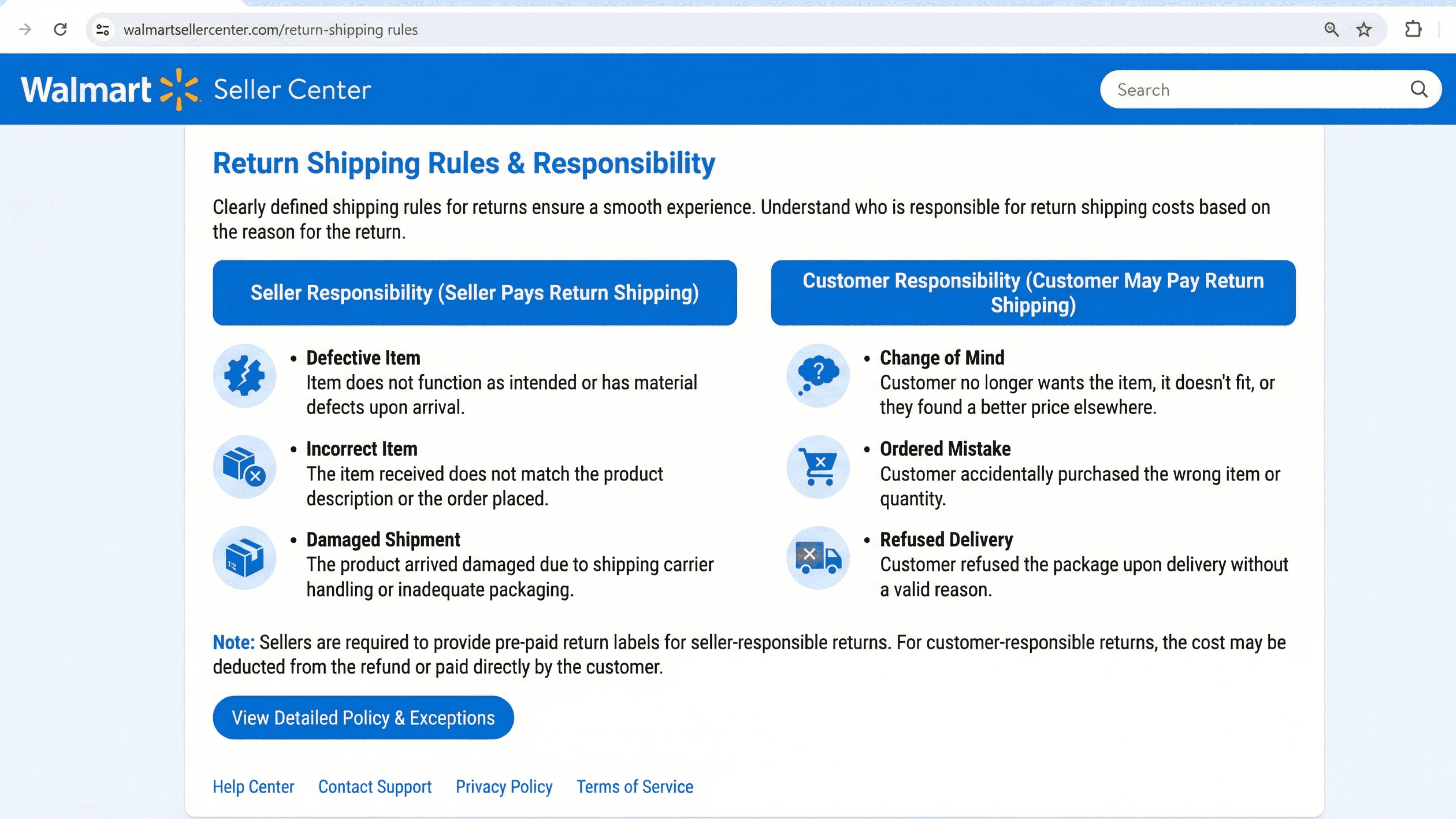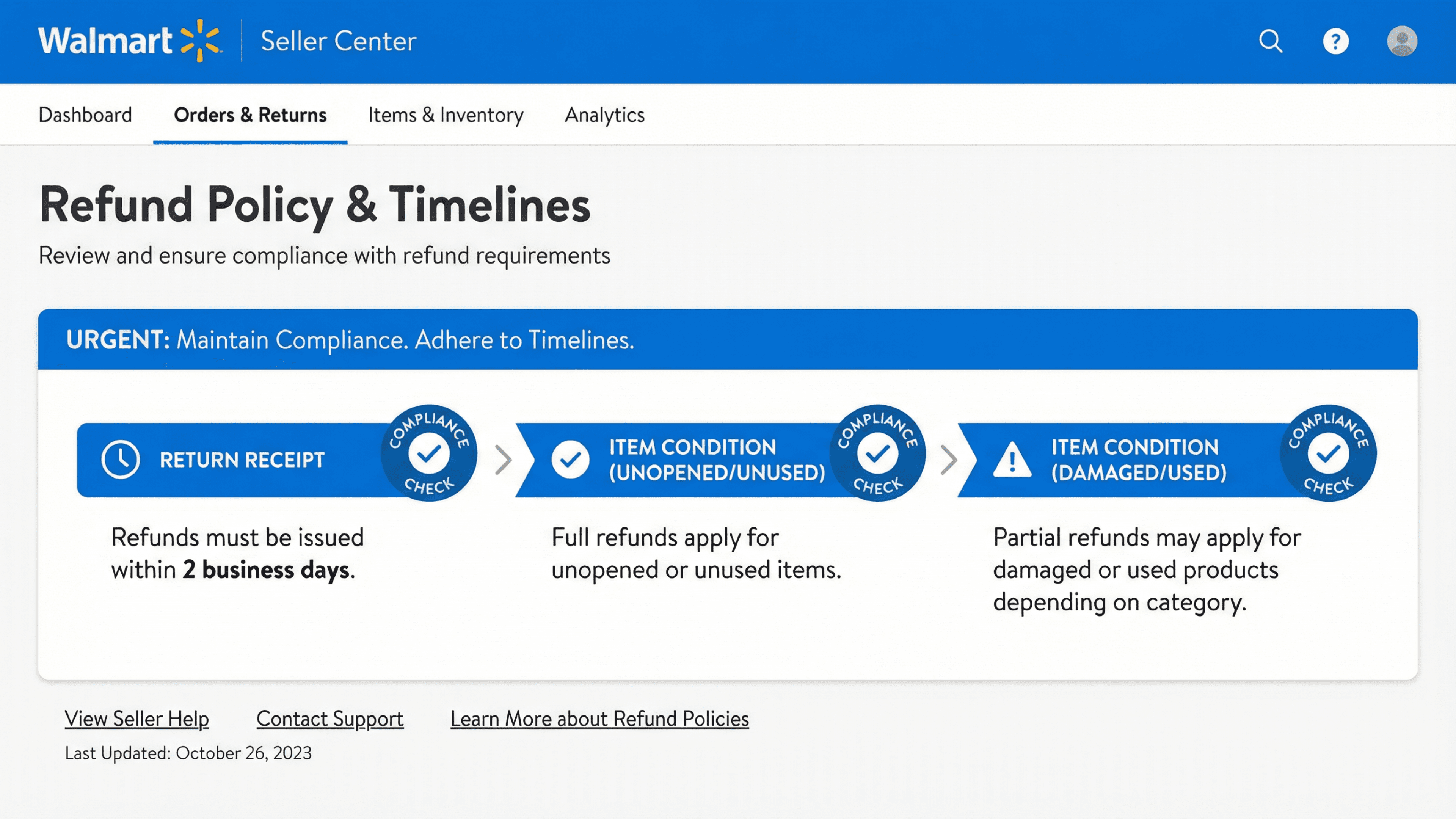 Set up returns, process refunds, and handle exceptions correctly on Walmart US.