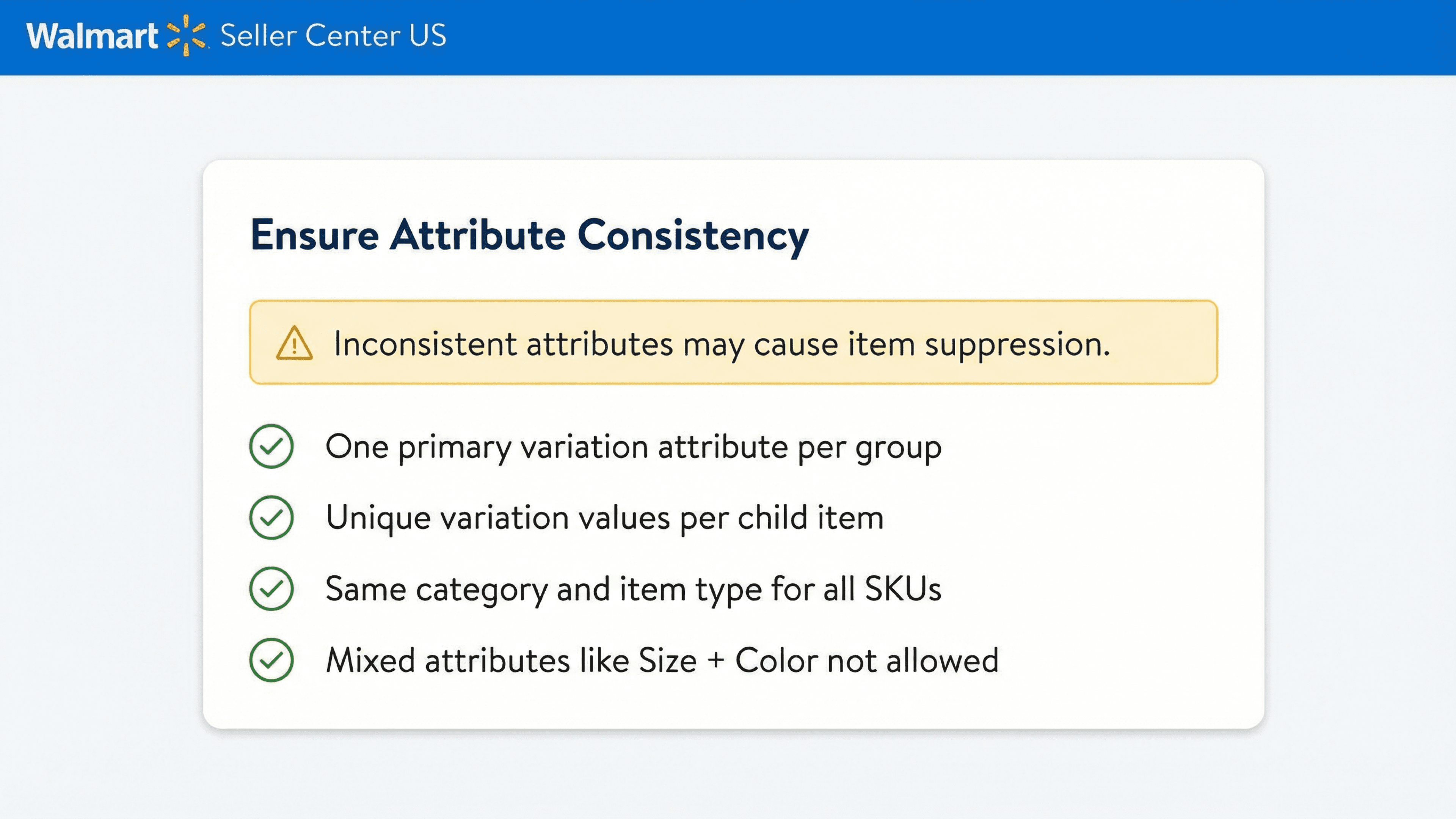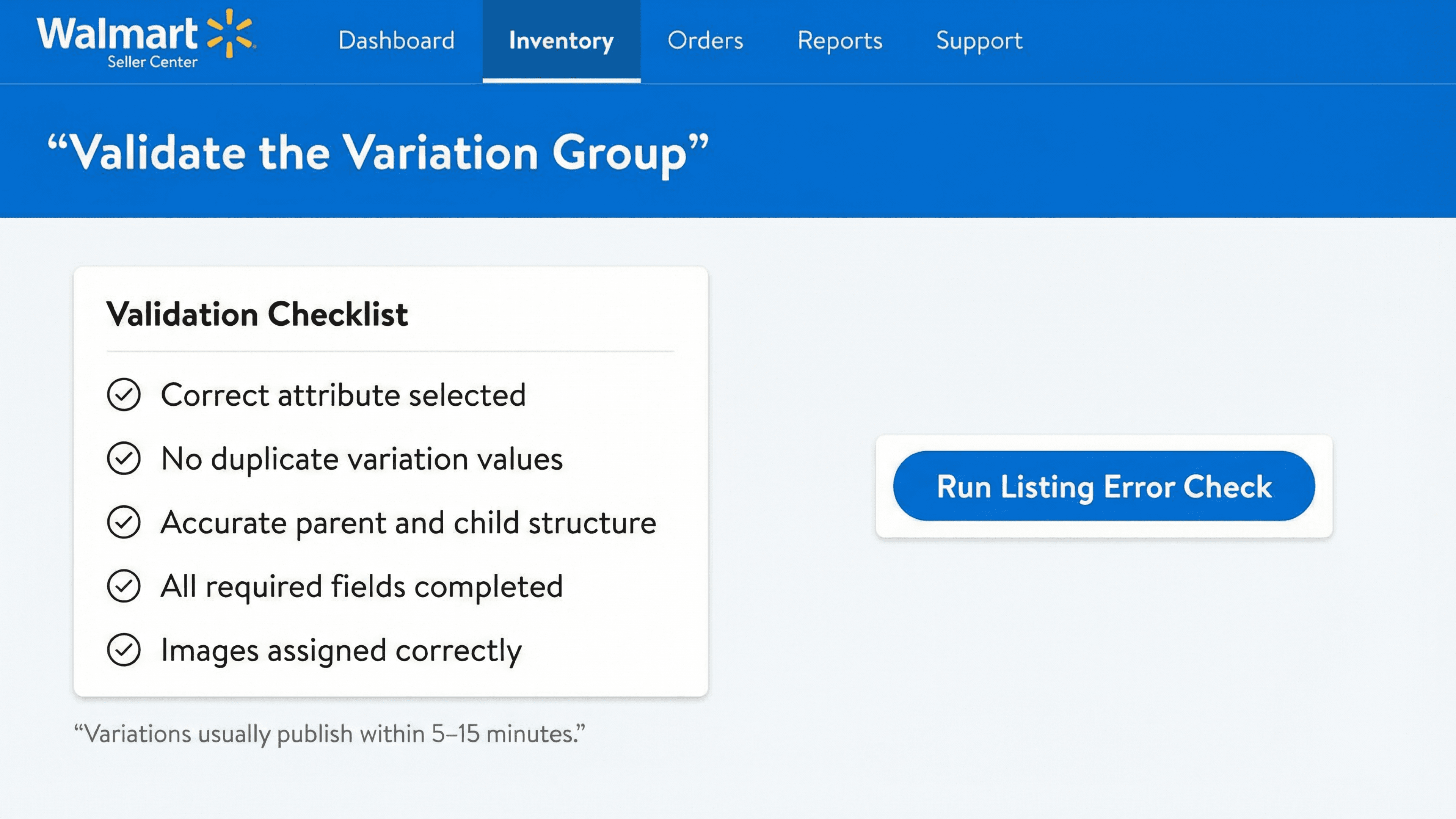 Create accurate, compliant variation groups for Walmart US listings.