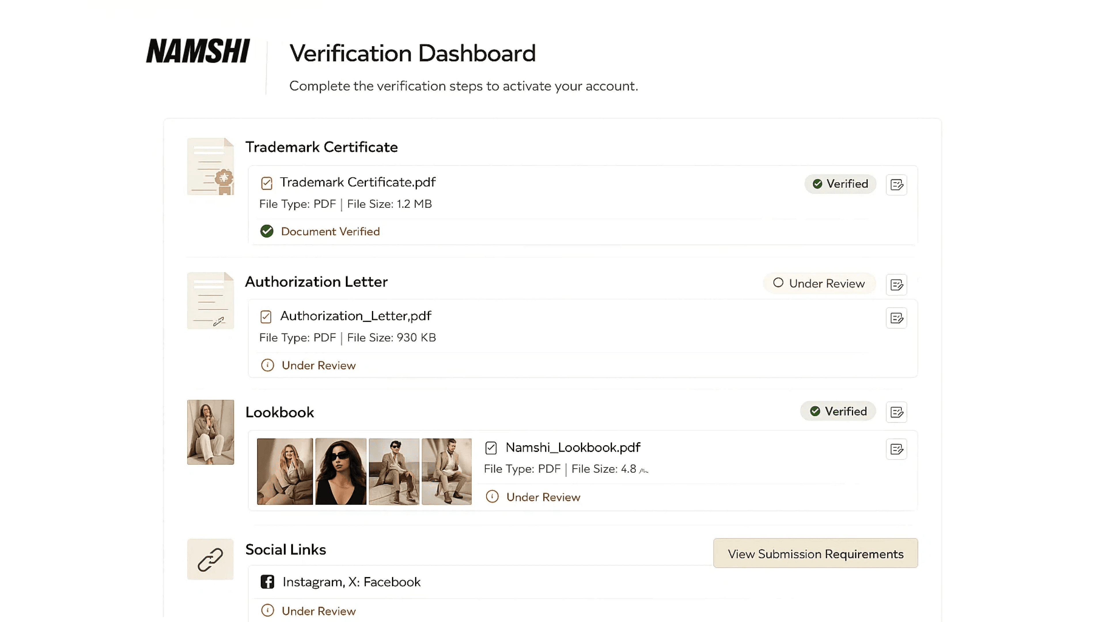 Namshi evaluates brand fit — strong imagery and brand identity improve approval.