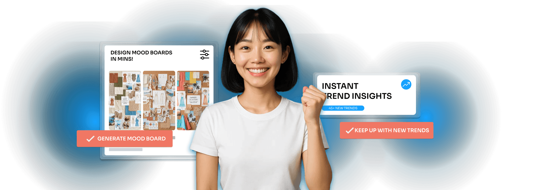 Access AI-curated trend data, references, and color stories through Artifax. Turn insights into ready-to-share concept boards in minutes.